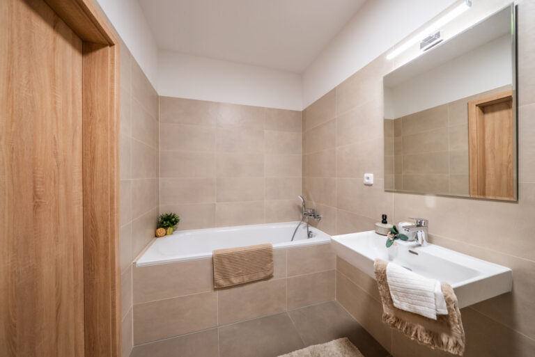 Koupelna s vanou i sprchovým koutem
