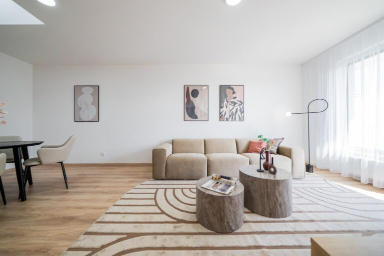 Je úplně nový, nikdy neobývaný, a je to na něm znát – čistota, svěžest a ten pocit, že všechno je jen vaše, od prvního dne.