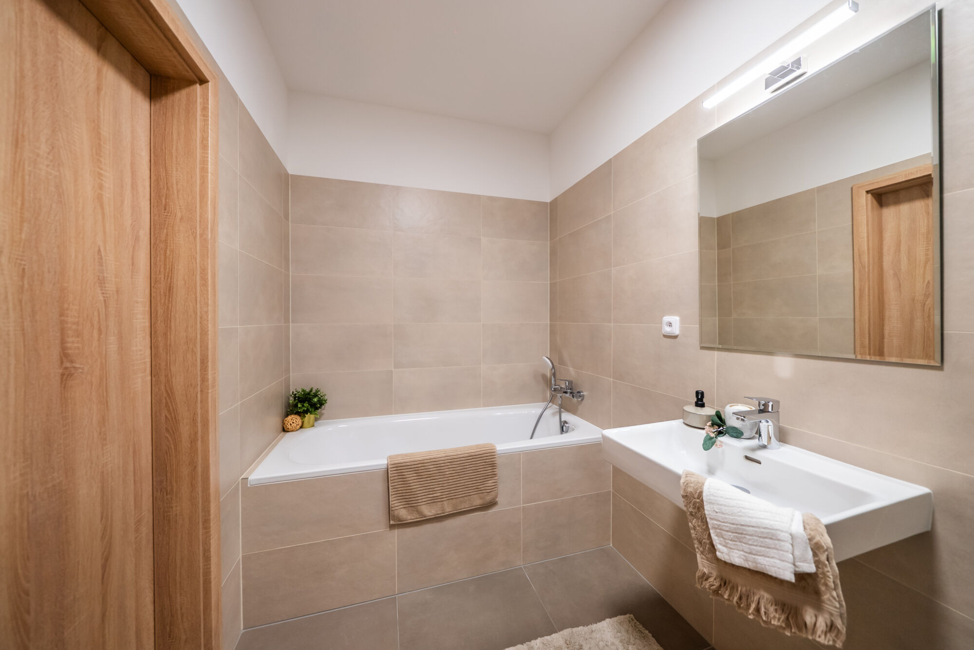 Je úplně nový, nikdy neobývaný, a je to na něm znát – čistota, svěžest a ten pocit, že všechno je jen vaše, od prvního dne.