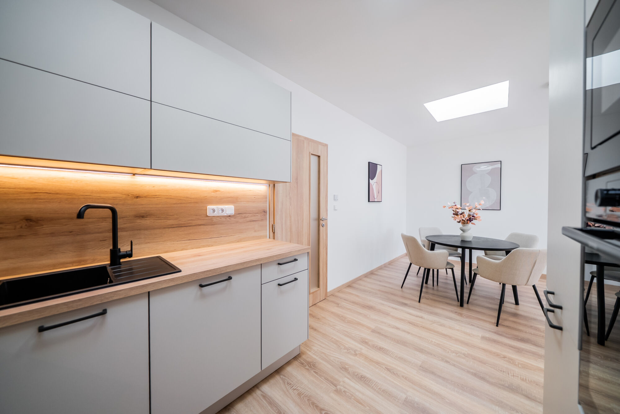- na chodbě, v kuchyni a přímo nad jídelním stolem jsou umístěny tři světlovody, které do bytu přivádějí více přirozeného denního světla 🌞