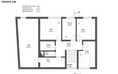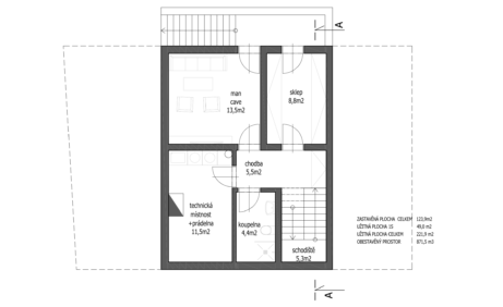- 501 m² celková plocha pozemku, 221 m² užitná plocha domu, včetně sklepů a garáže
