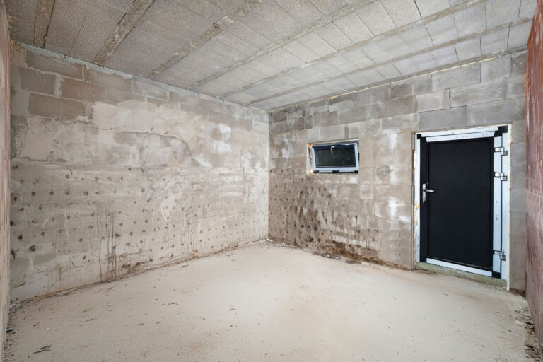 suterén s budoucí prádelnou, pánskou místností i vstupem na zahradu